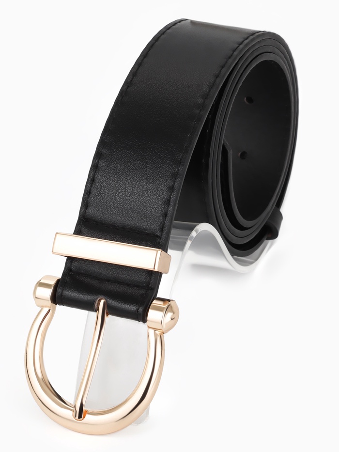 Ремень жен, 06-01-01-02, 3,5*0,3*110 см, без винта, пряжка золото, 2 прокол, черный