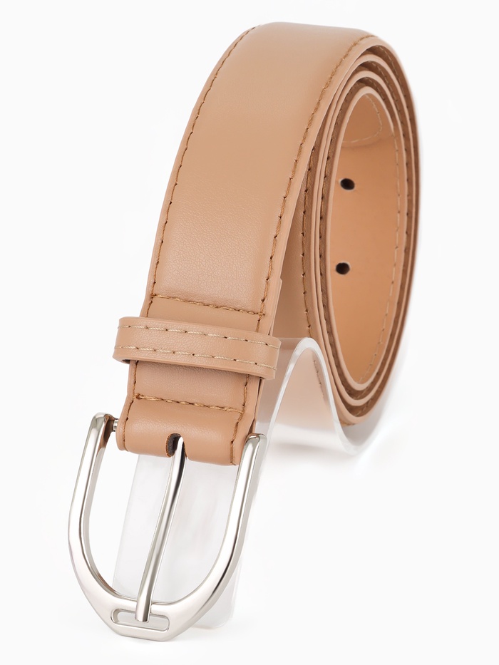 Ремень женский, 3.5×110 см, 1 прокол, серебристая пряжка, без винта, бежевый