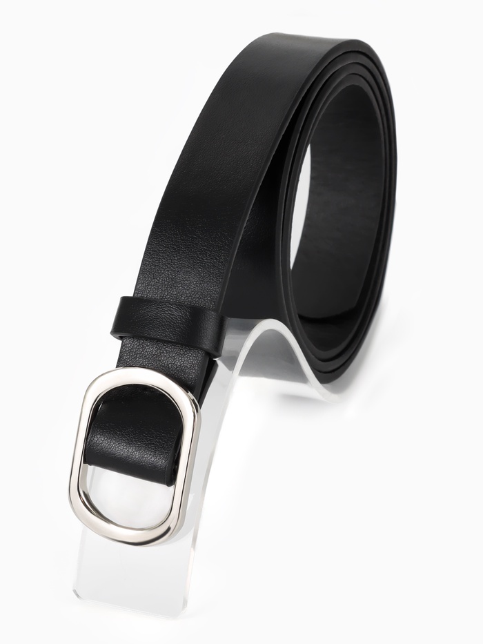 Ремень женский, 3.5×110 см, 1 прокол, серебристая пряжка, без винта, чёрный