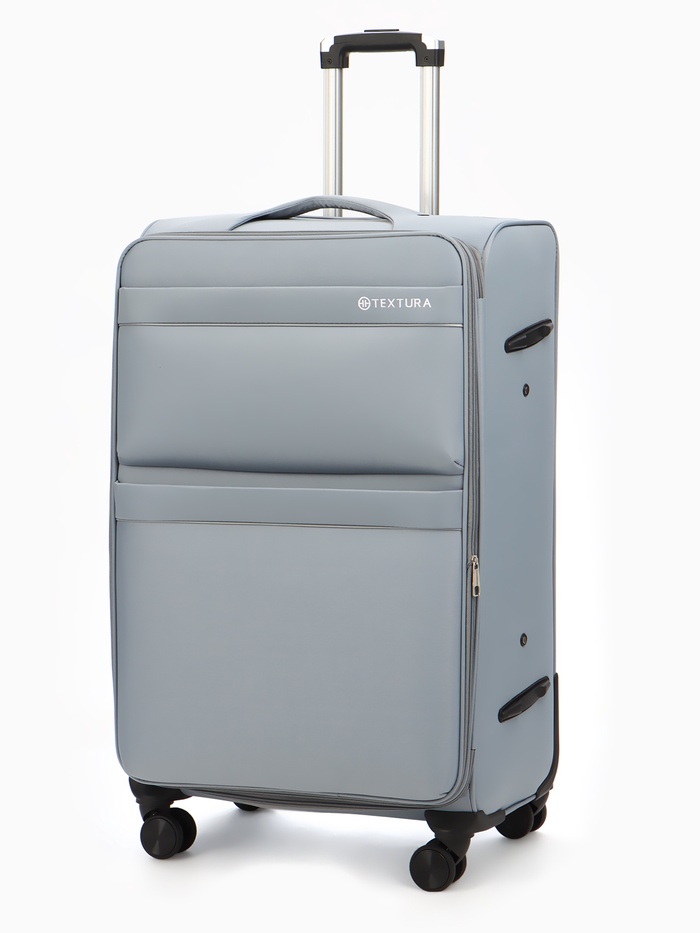 Чемодан 28",Текст,47*30*78,отд на молнии,1 нар/карм, увелич,код замок,4 колеса, т.серый