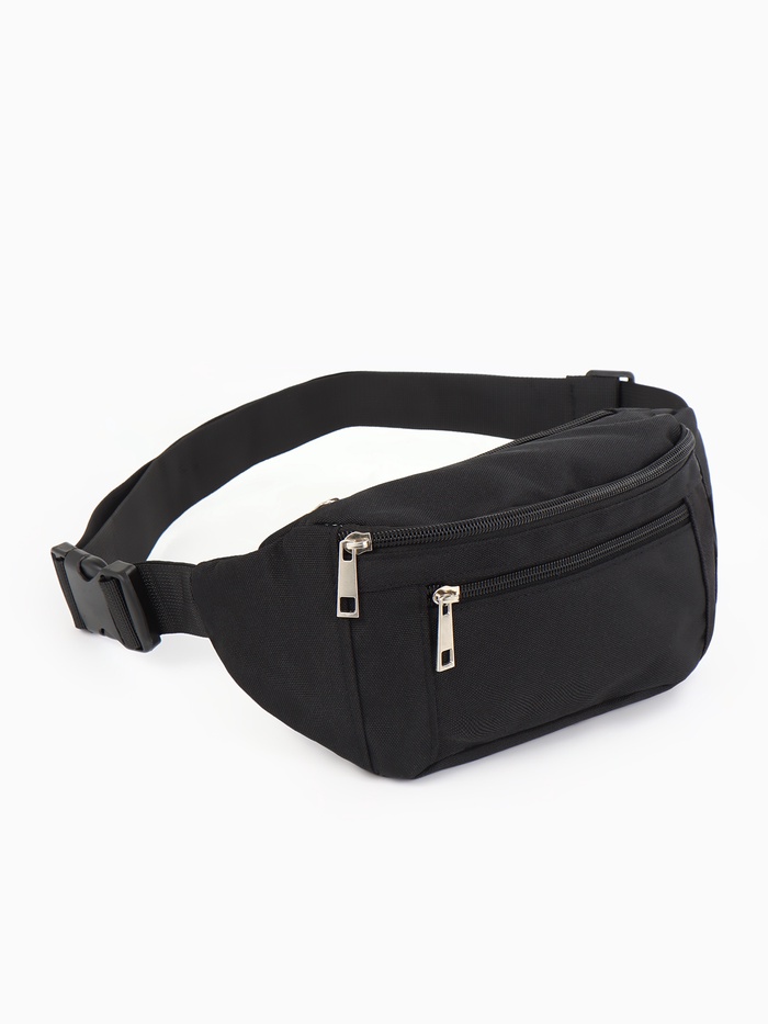 Сумка поясная, однотонная, на молнии, 34×6×12 см, чёрная