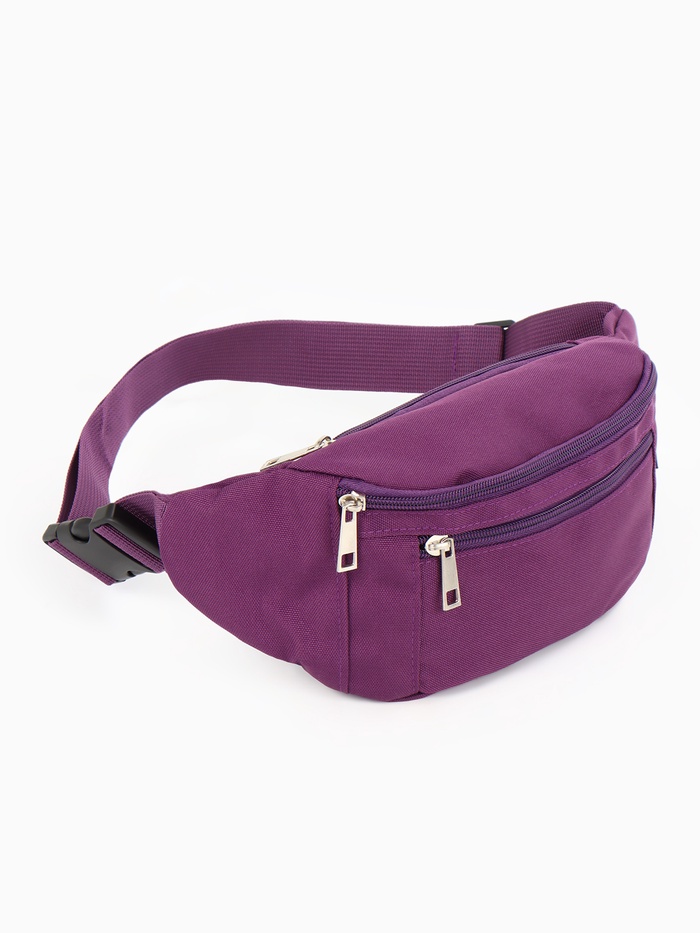 Сумка поясная, однотонная, на молнии, 34×6×12 см, фиолетовая