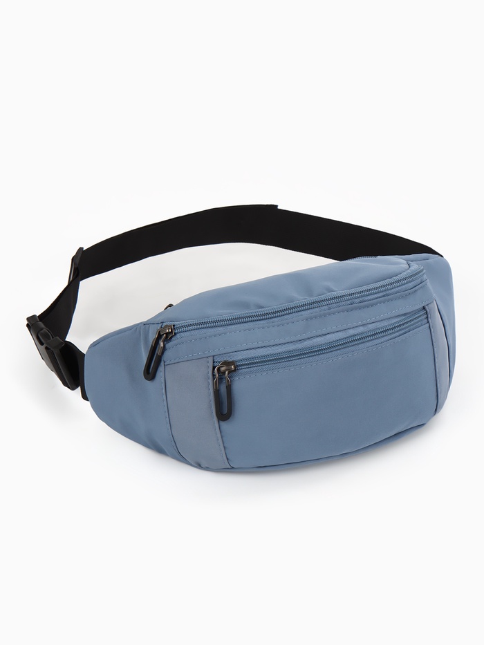 Сумка поясная, однотонная, на молнии, 34×6×12 см, синяя