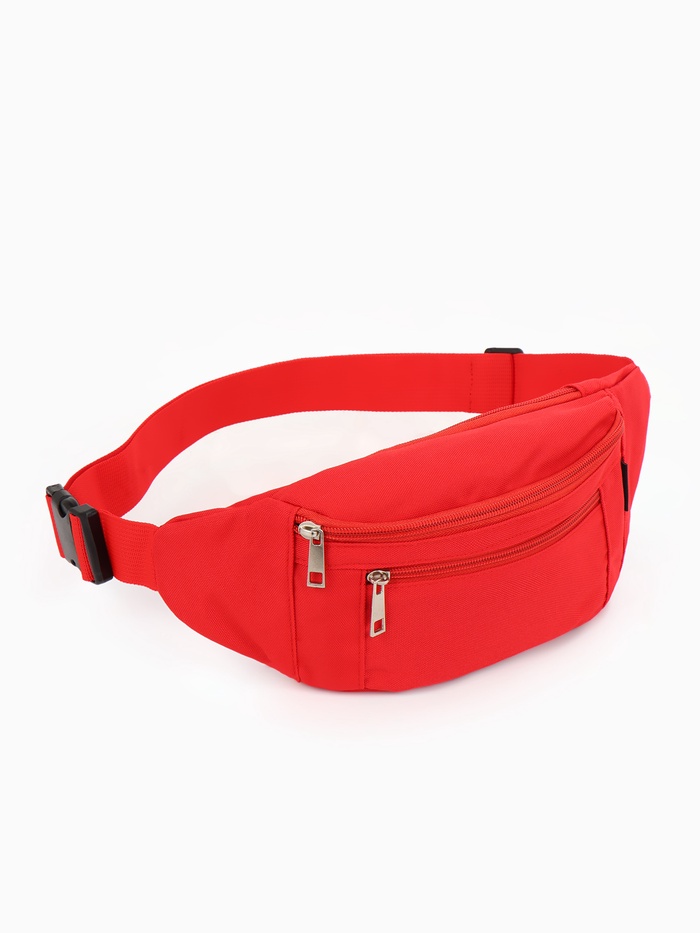 Сумка поясная, однотонная, на молнии, 34×6×12 см, красная