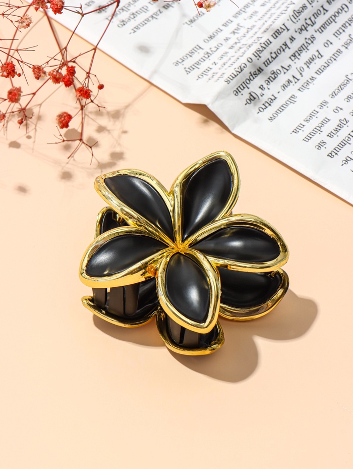 Крабик для волос «Классик» цветы, 7×4.5 см, матовый, чёрно-золотой