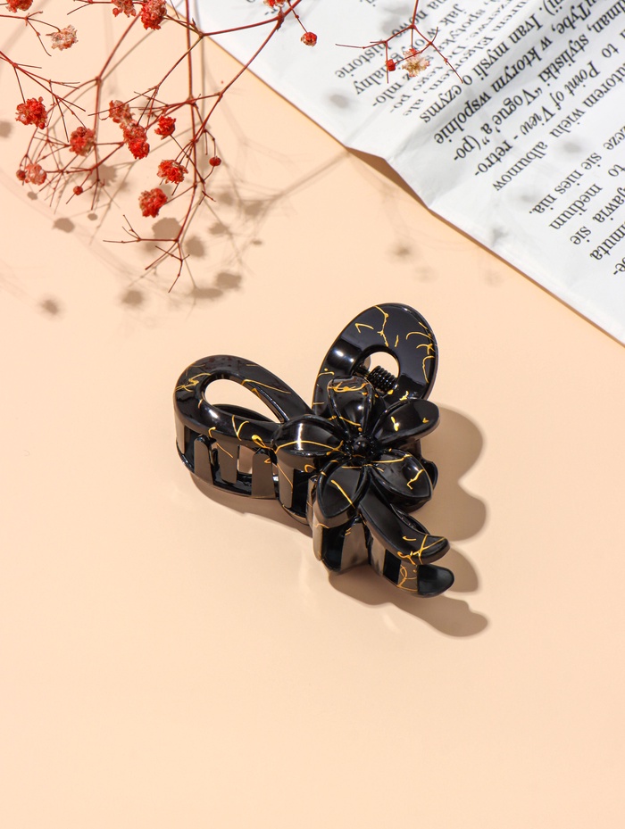 Крабик для волос «Классик» цветок петельки, 7×4.5 см, чёрно-золотой