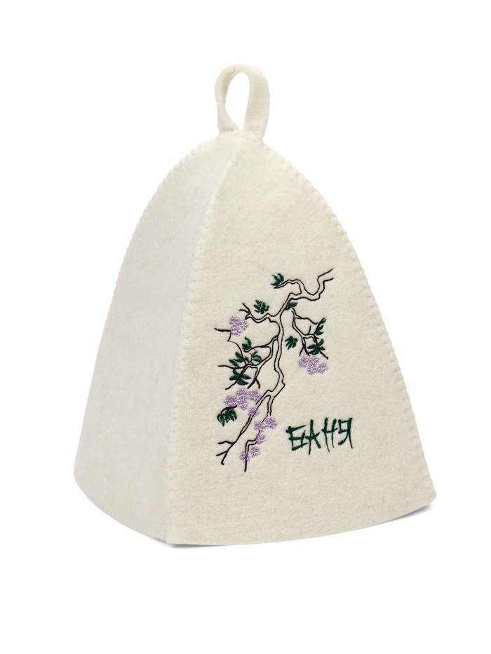 Шапка банная с вышивкой "С легким паром", фетр белый
