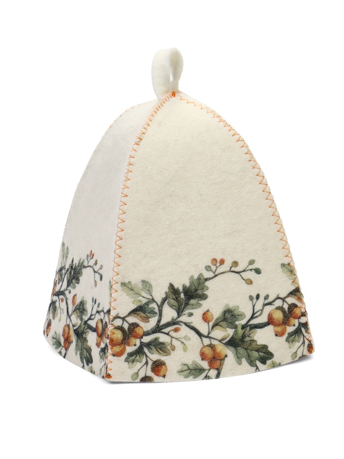 Шапка банная с принтом "Дубовый венок", фетр белый