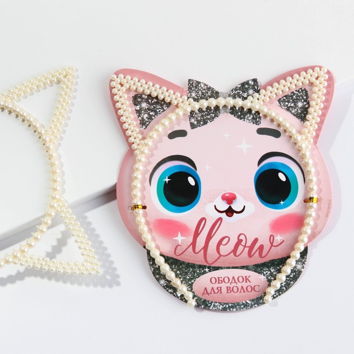 Ободок новогодний для волос жемчужный Meo, киса, ширина 12 см