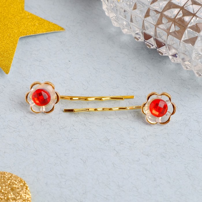 Невидимка для волос "Аленький цветочек" (набор 5 пар) цветок 4 см, красно-золотой