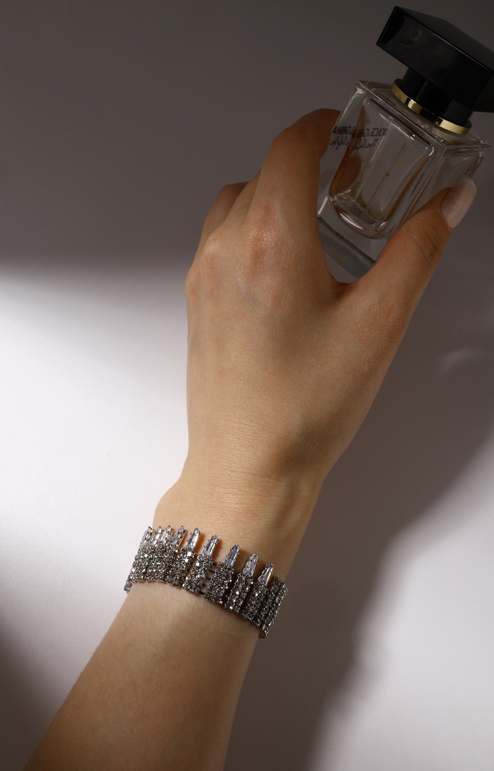 Браслет со стразами «Лёд» волны, цвет белый в серебре