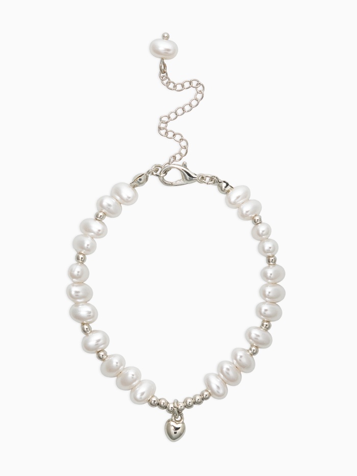 Браслет жемчуг "Рисинкис сердцем" , цвет белый в серебре