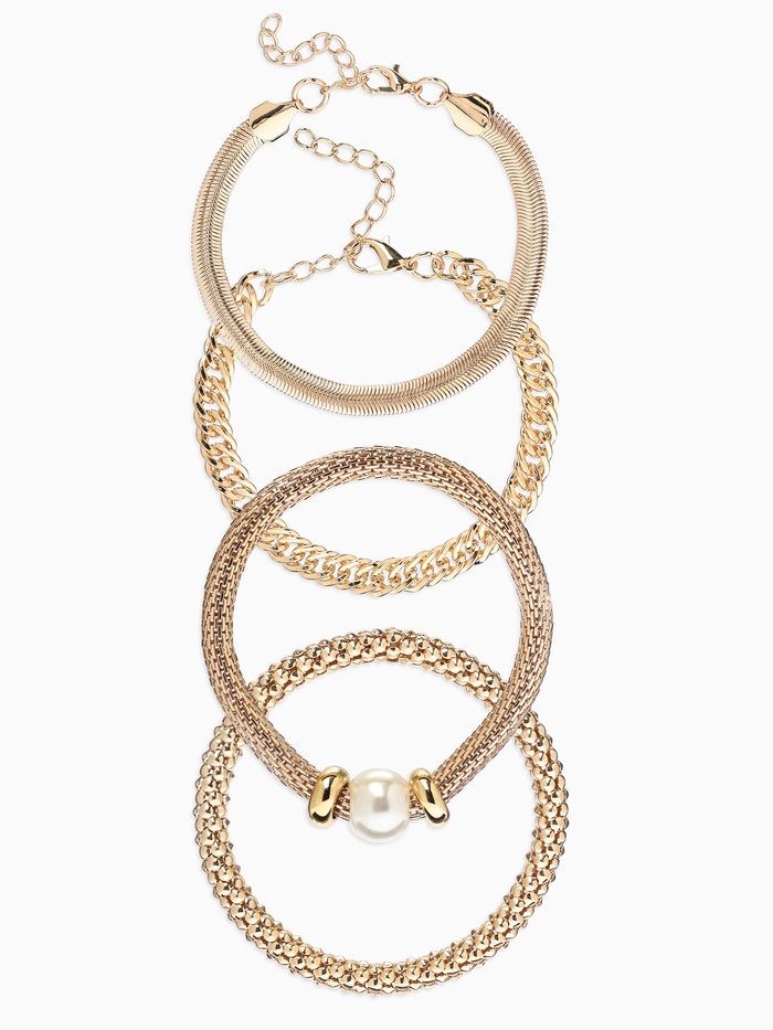 Браслет "Стиль" (набор 3шт) плетение, звенья, цвет белый в золоте