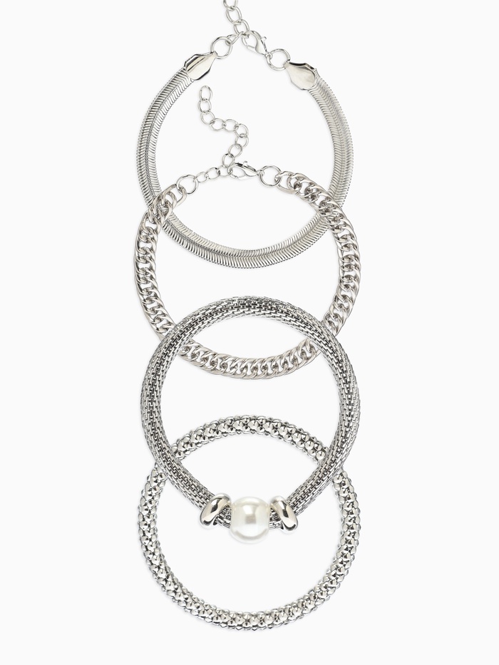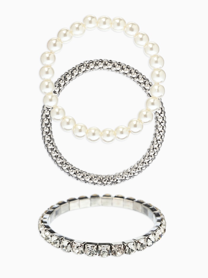 Браслет "Стиль" (набор 3шт) плетение, звенья, цвет белый в серебре