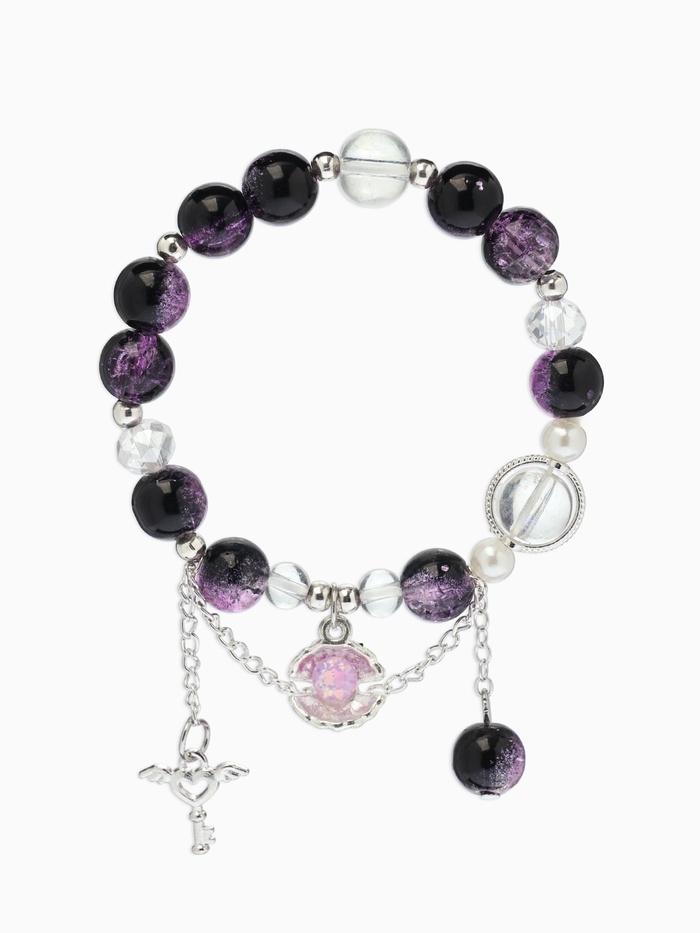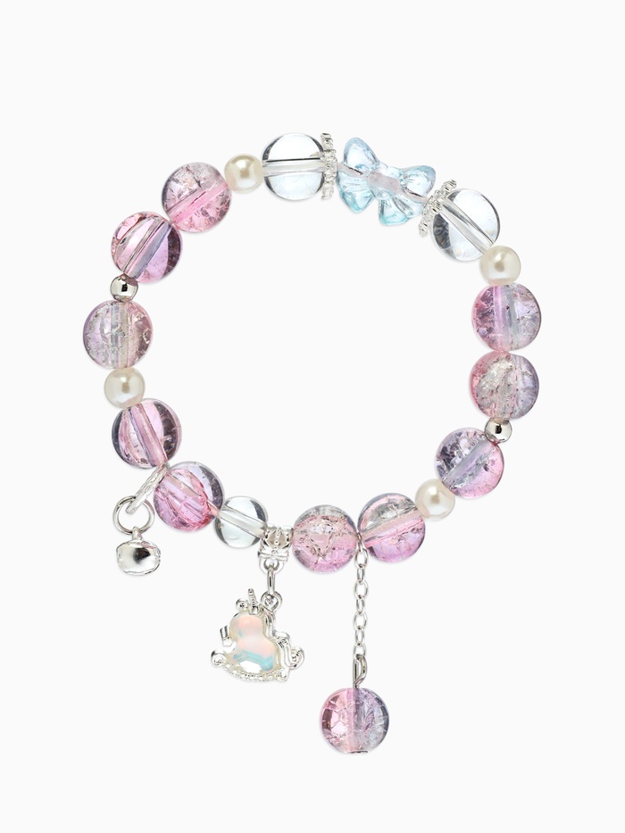 Браслет с подвесками "Сахарный" лошадка, шар №10/8, цвет фиолетово-розовый в серебре