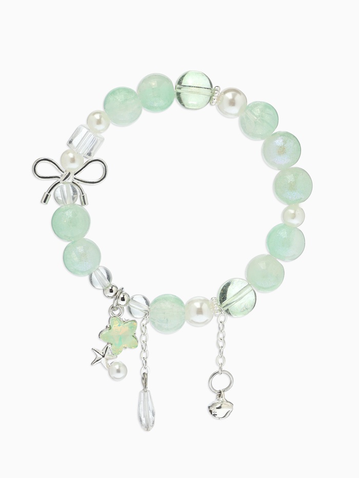 Браслет с подвесками "Сахарный" звёздочка, шар №10/8, цвет бело-светло-зелёный в серебре