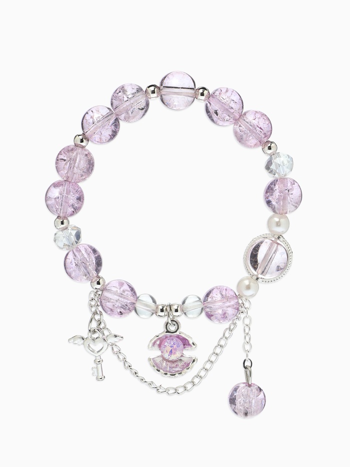 Браслет с подвесками "Сахарный" ракушка, шар №10/8, цвет сиреневый в серебре