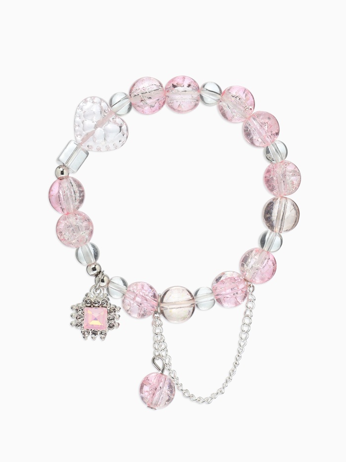 Браслет с подвесками "Сахарный" ромб, сердечко, шар №10, цвет бело-розовый в серебре