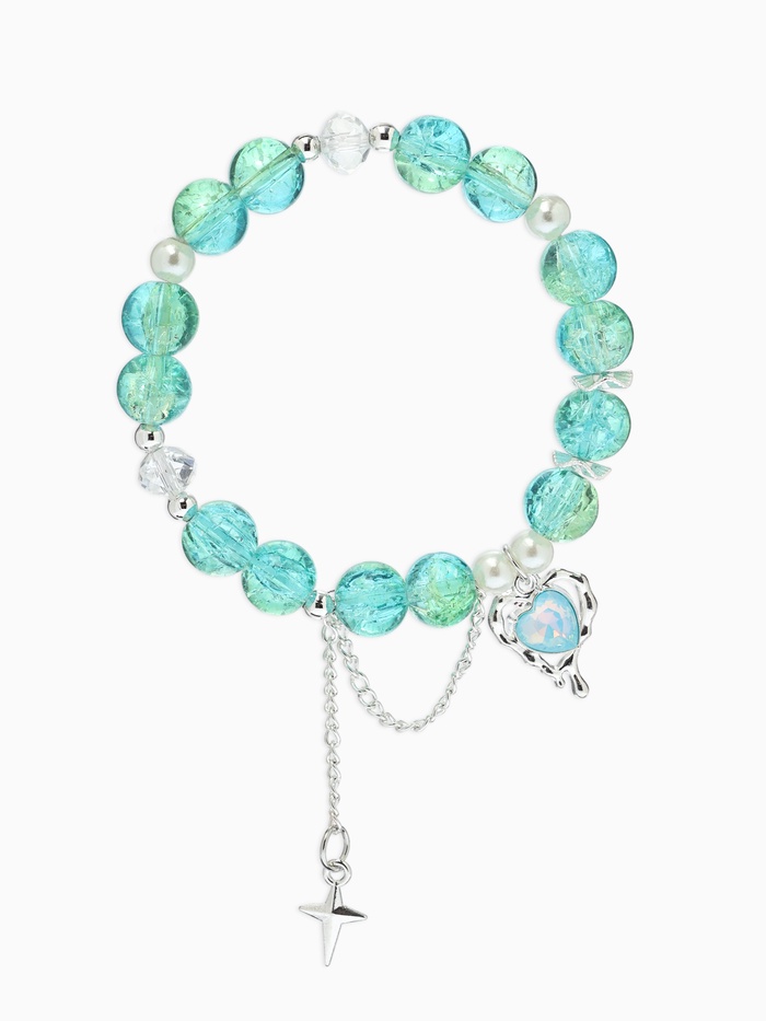 Браслет с подвесками "Сахарный" сердце, искра. шар № 10/8, цвет зелёно-голубой в серебре