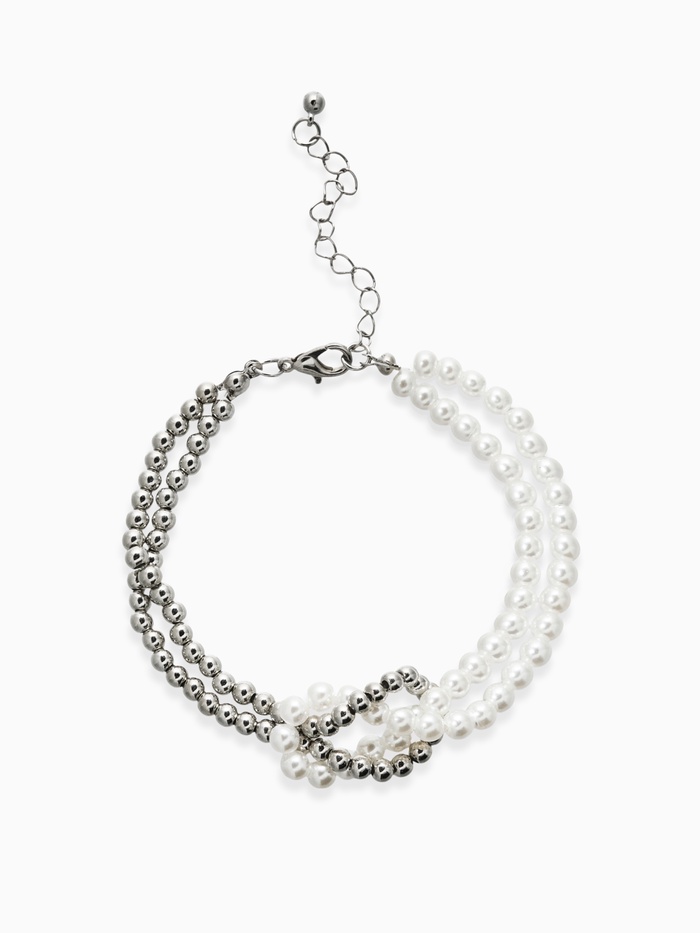 Браслеты из бусин «Жемчужный узел», 17+5 см, бусины № 7, белый в серебре