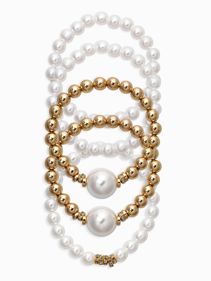 Браслеты из бусин «Стильный жемчуг», набор 5 шт. бусины №8 и 16, белый в золоте