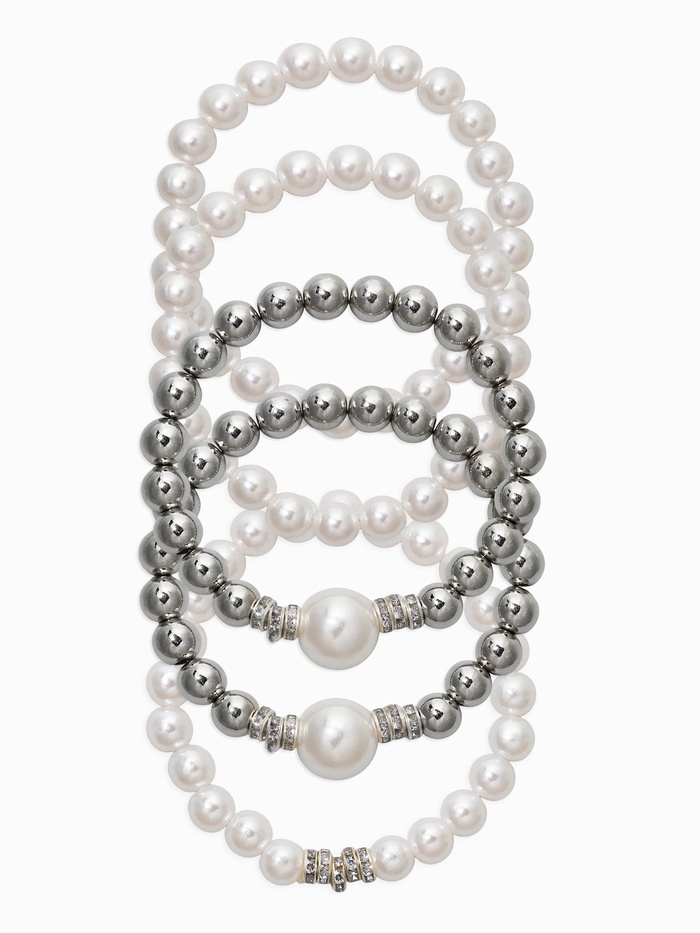 Браслеты из бусин «Стильный жемчуг», набор 5 шт. бусины №8 и 16, белый в серебре