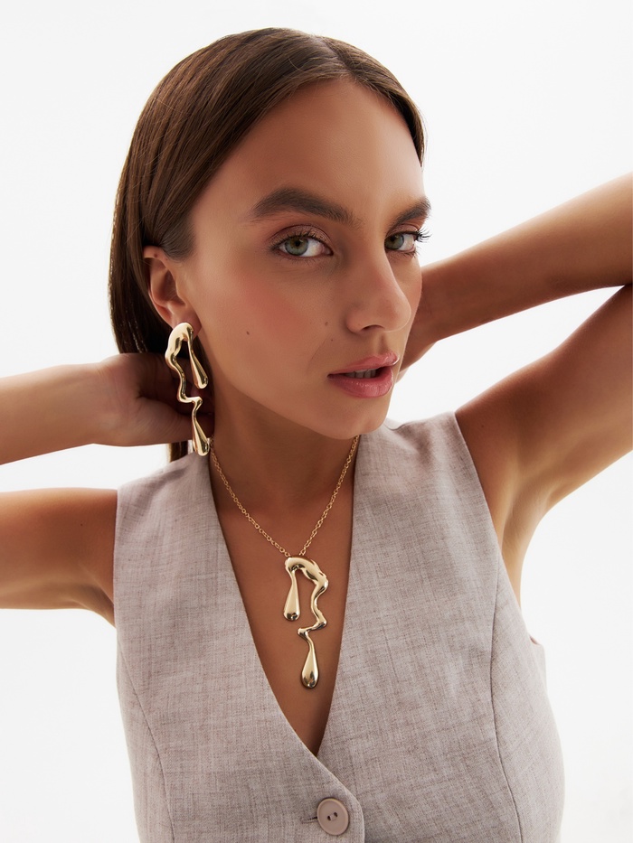 Гарнитур 2 предмета: кулон, серьги «Капли» таяние, цвет золото