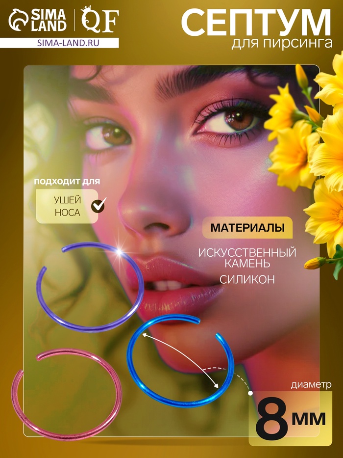 Пирсинг в нос «Кольцо», d=8 мм, набор 40 шт., МИКС 750