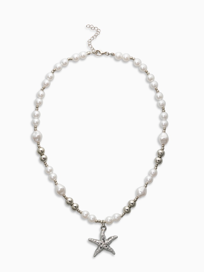 Кулон на жемчужных бусах "Морская звезда", цвет белый в серебре