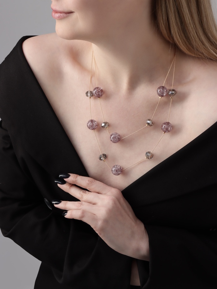 Бусы «Карамель» два ряда, бусина №16, цвет серый в золоте, 54 см