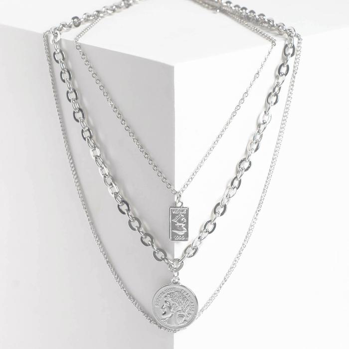 Кулон «Цепь» вдохновение, 3 нити, цвет серебро, 57 см