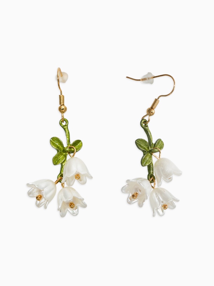Серьги «Цветы Ландыша», бело-зелёные в золоте