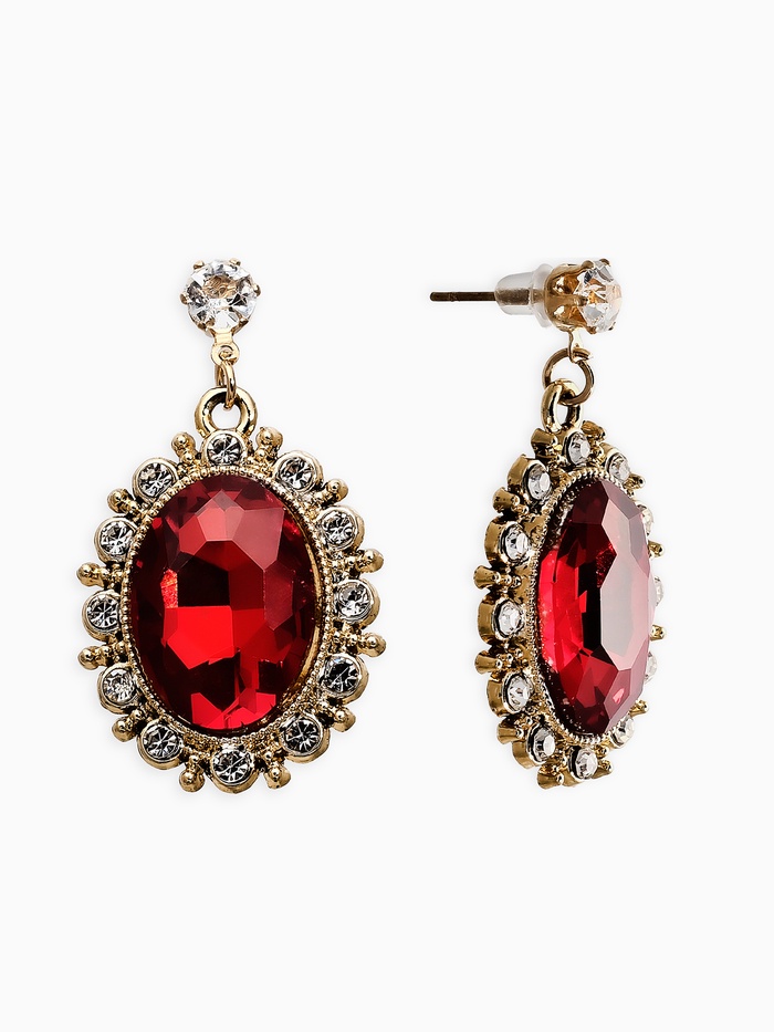 Серьги со стразами "Овал грань", цвет красный в золоте
