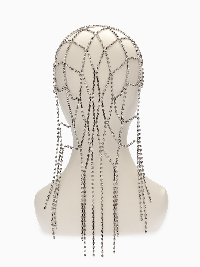 Украшение для волос "Паутина" 44см, цвет белый в серебре