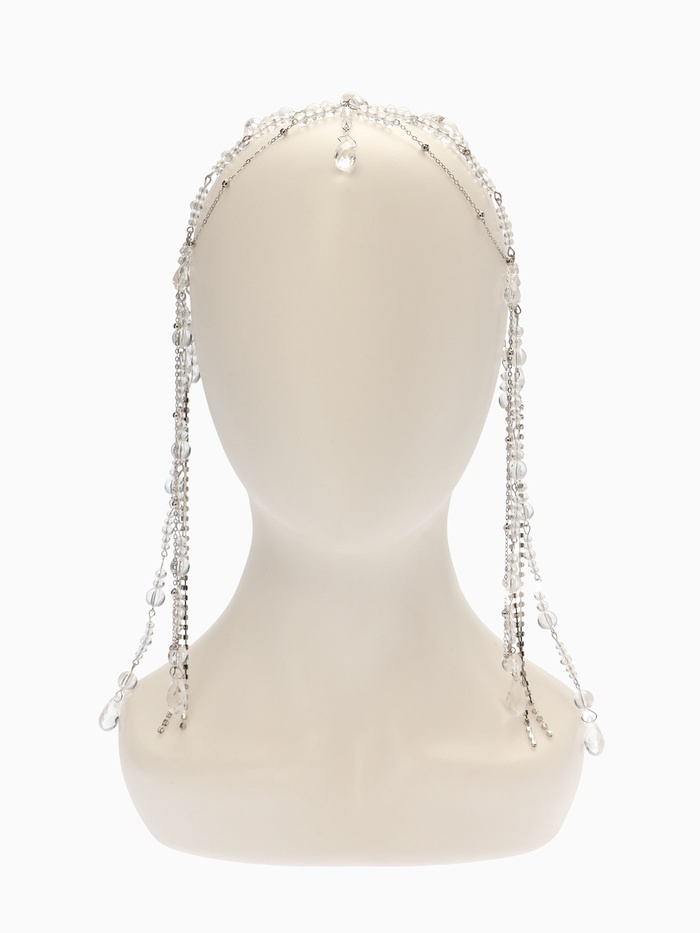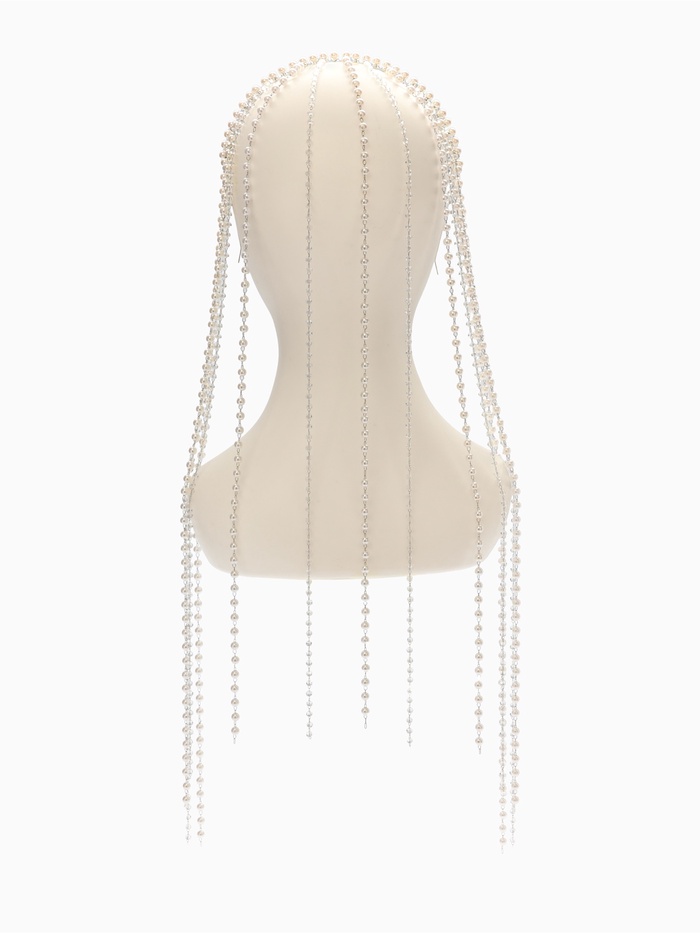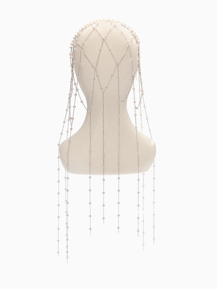 Украшение для волос «Паутина», с бусинами, 55 см, белое в серебре