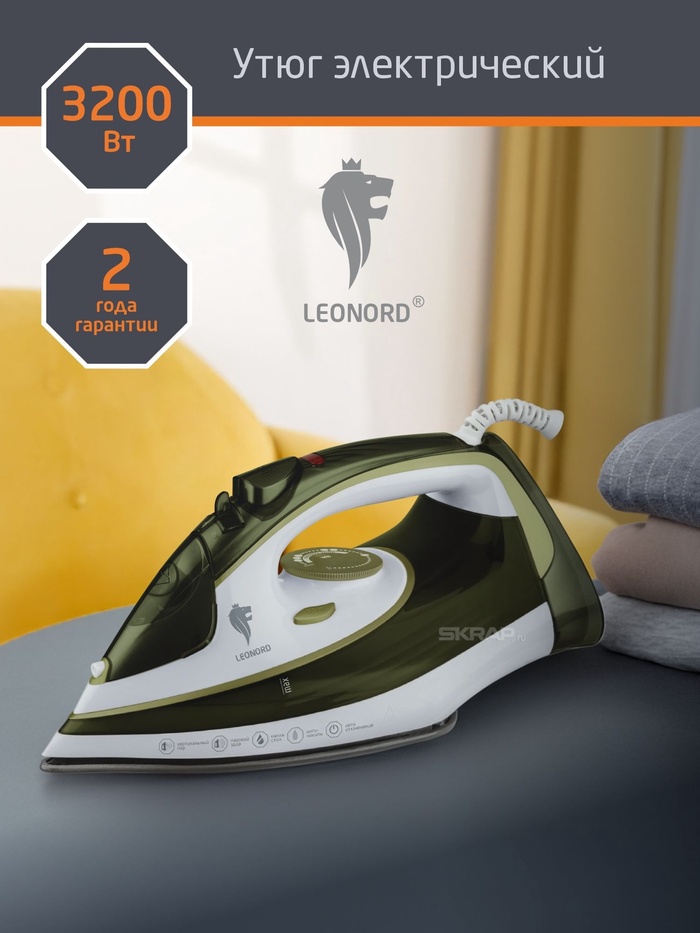 Утюг Leonord LE-1808, 3200 Вт, керамическая подошва, 32 г/мин, 350 мл, зеленый