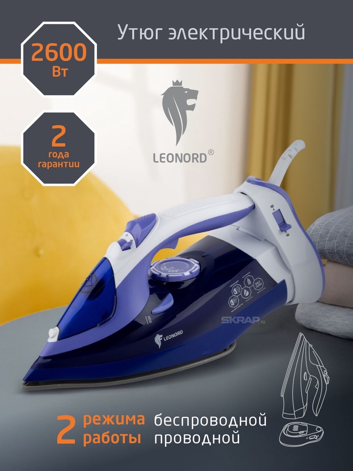Утюг Leonord LE-1807U, 2600Вт,беспроводной/проводной, керамическая подошва, 28г/мин, 350мл