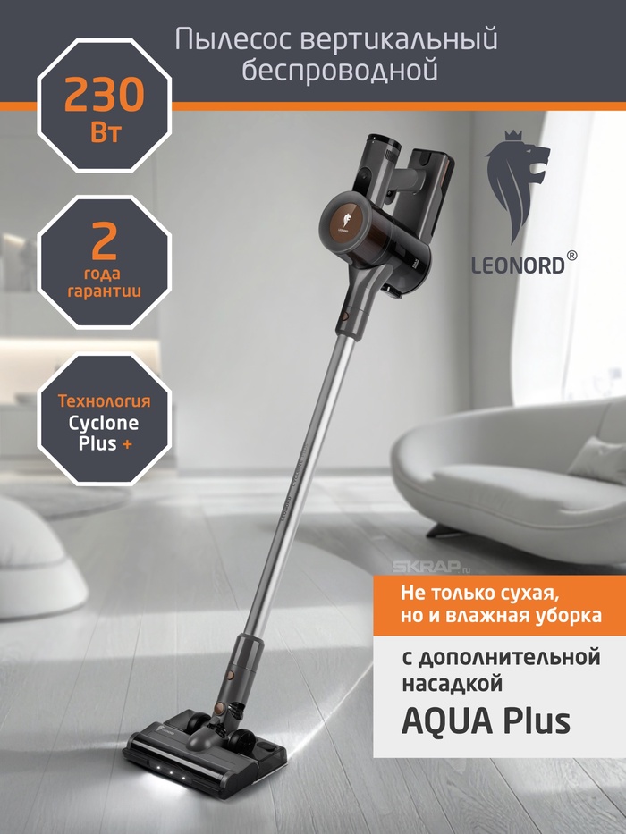 Пылесос вертикальный Leonord LE-1416 DC, беспроводной, 230Вт,0.5л,2200мАч,10кПа,3 скорости