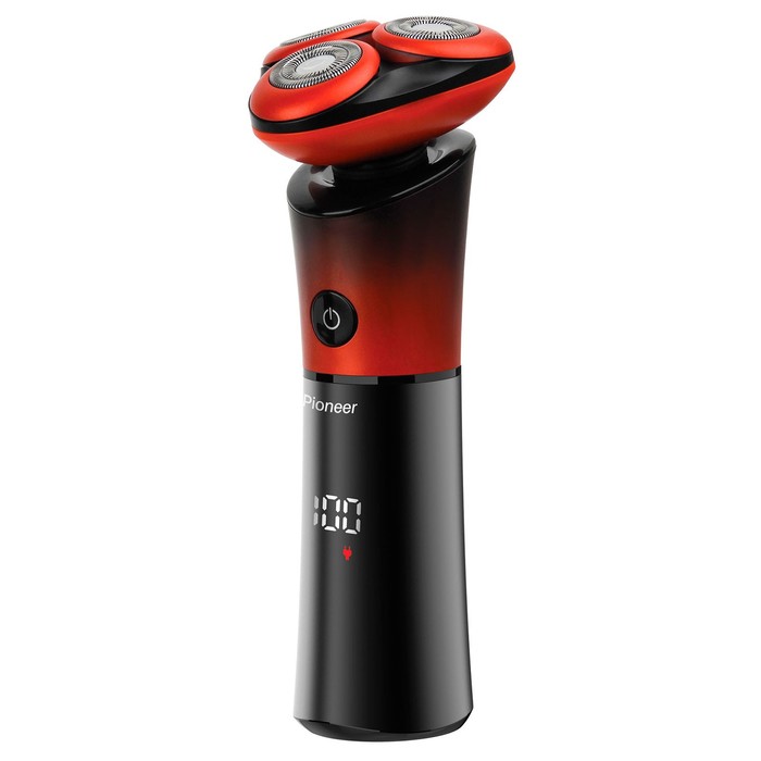 Электробритва Pioneer BS003, 3 головки, 2 насадки, АКБ, чёрно-красная