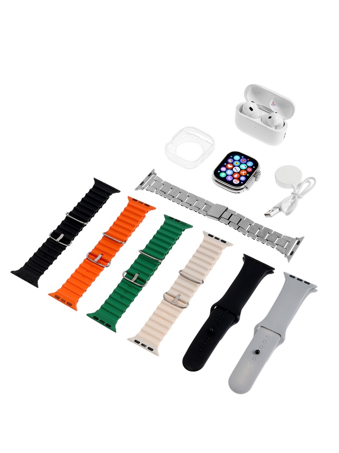 Подарочный набор Watch4, 9 в 1, смарт-часы, наушники, 7 ремешков