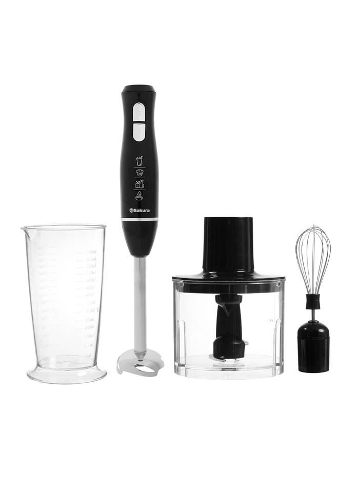 Блендер Sakura SA-6266SBK, погружной, 600Вт, 2 скорости, стакан 0.7л, чоппер 0.5л, венчик