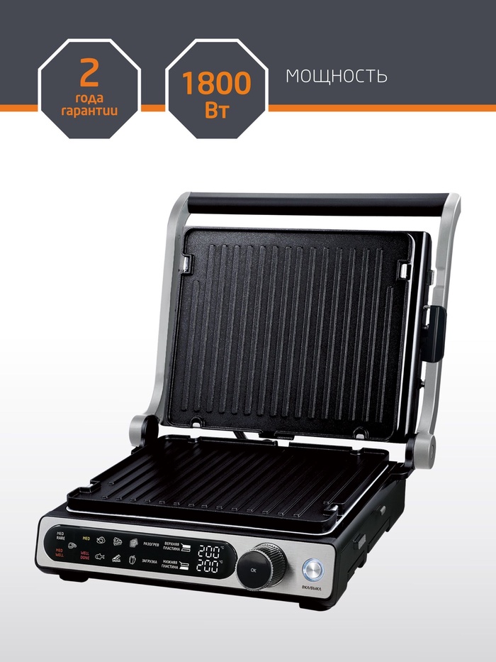 Гриль Leonord LE-1723, 1800Вт, 10 программ, 3 в 1,панели:гриль, гладкие, вафли, до 230°С