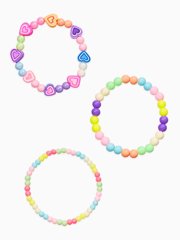 Браслет детский «Выбражулька», 3 шт. набор, сердца, бусины, цветной