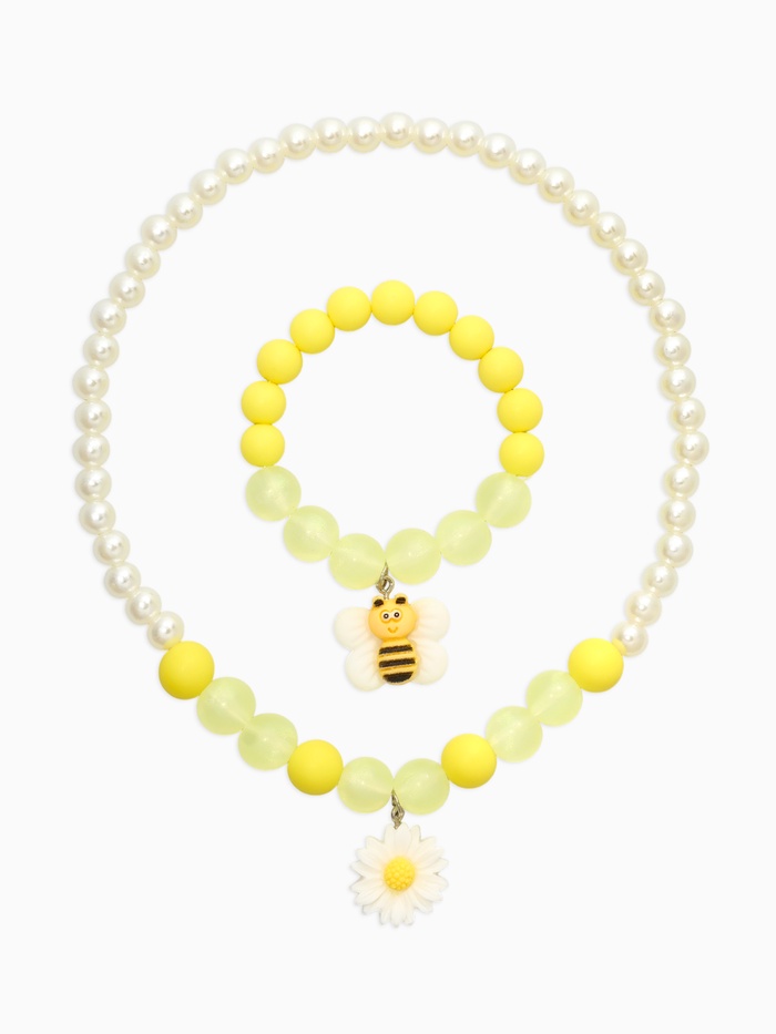 Набор детский "Выбражулька" 2 пред-а: бусы, браслет, пчелка, бело-желтый