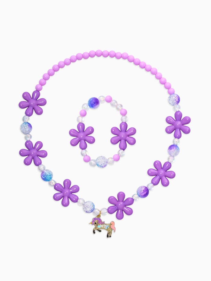 Набор детский "Выбражулька" 2 пред-а: бусы, браслет, единорог, фиолетовый