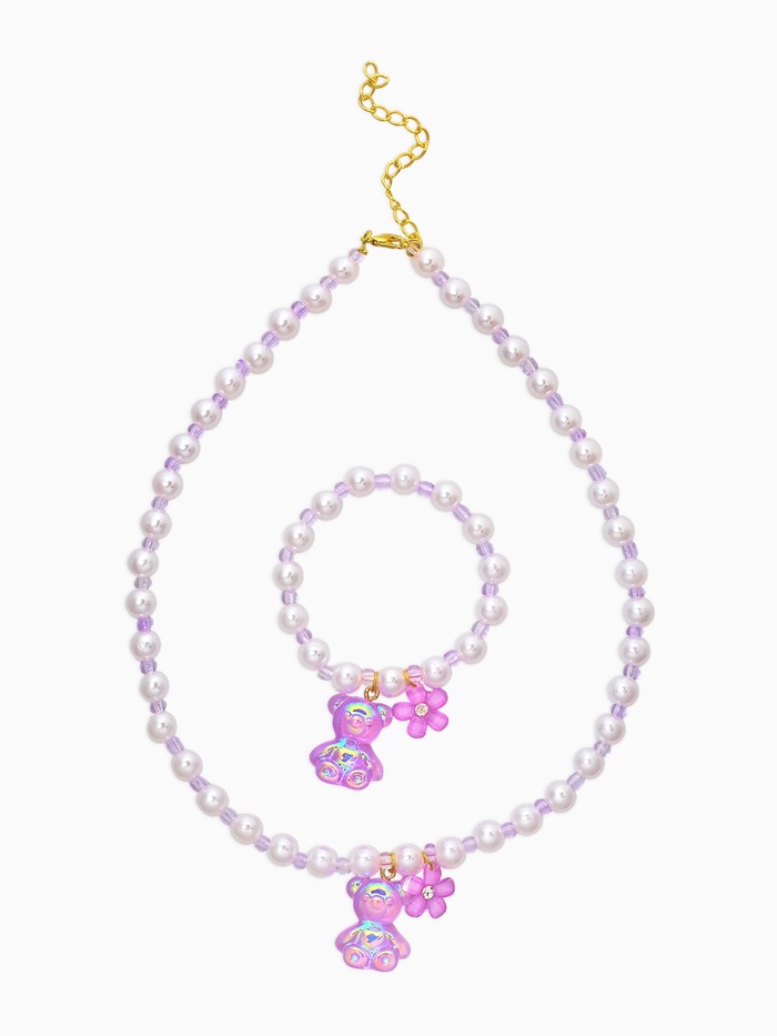 Набор детский "Выбражулька" 2 пред-а: бусы, браслет, мармеладный мишка, бело-фиолетовый