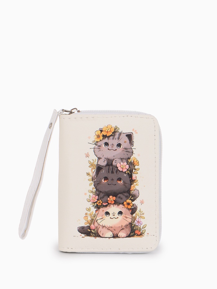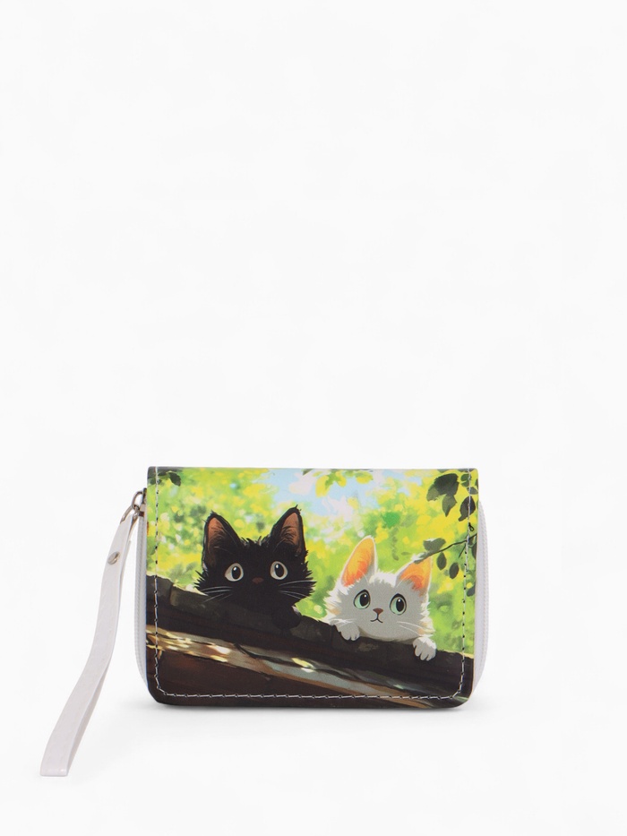 Кошелек дет 07-01-01 Июнь2527 кот, 12*1,5*9 см, 2 отд+отд/молн, д/карт, белый