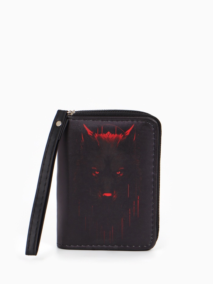 Кошелек дет 07-01-01 Июнь2529 волк, 12*1,5*9 см, 2 отд+отд/молн, д/карт, черный