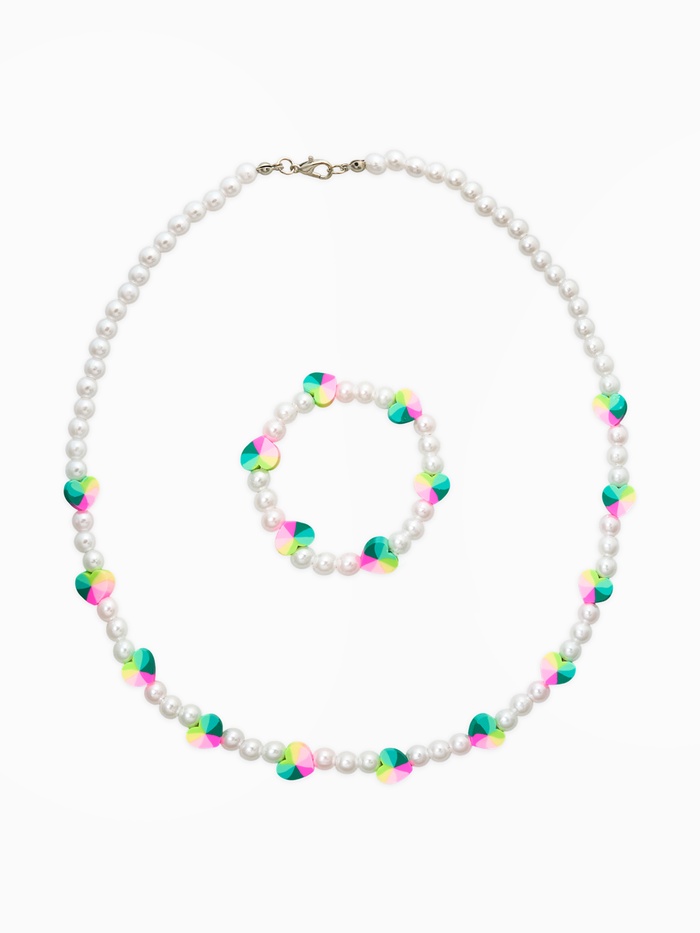 Набор детский "Выбражулька" 2 пред-а: бусы, браслет, жемчуг, сердца, цвет бело-разноцветный 109606