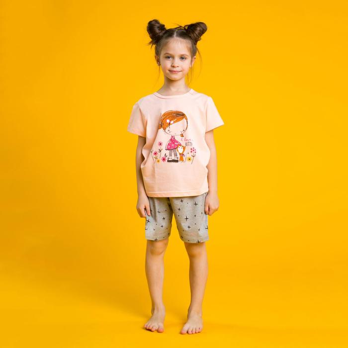 Пижама для девочки "Девочка с котёнком", рост 104-110 см, цвет персиковый/серый